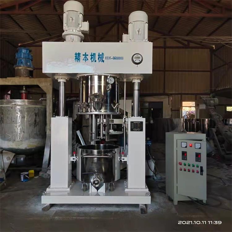 雙行星攪拌機(jī)根據(jù)行星運(yùn)動(dòng)軌跡設(shè)計(jì),攪拌結(jié)構(gòu)有低速攪拌器、高速攪拌器、以及相應(yīng)的刮板裝置組合而成。雙行星攪拌機(jī)的雙組低速攪拌器自轉(zhuǎn)的同時(shí)繞著軸心進(jìn)行公轉(zhuǎn),而且低速攪拌器的形式根據(jù)不同的物料粘度和生產(chǎn)工藝選擇不同的攪拌形式,常見的攪拌形式包括槳葉式、麻花式、爪式、框式等結(jié)構(gòu),具備良好的混合、反應(yīng)、捏合、溶解的作用;高速分散器由多層具備極高線速度的鋸齒狀分散盤組成,它同樣在高速自轉(zhuǎn)的同時(shí)繞著軸心進(jìn)行公轉(zhuǎn),能夠?qū)⒎哿希ㄖ鷦┛焖俚姆稚⒌綕{料里,具備很強(qiáng)的分散作用;刮板裝置根據(jù)客戶實(shí)際的生產(chǎn)工況選配。